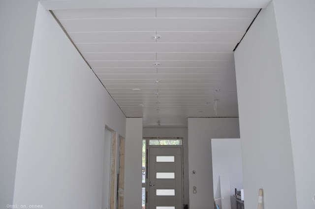 Viime viikonloppu sujahti, edessä on taas uusi. Rakennuksella oltiin ehkä tehokkaampia kuin olisin uskonutkaan. Pikkuveljet on huippuja. :) Viime viikonloppuna Eetu asensi liesituulettimen sähkömiehen avustuksella kattoon ja saarrekkeen kaapistot ja astianpesukoneen paikoilleen. Keittiö näyttää jo ihan keittiöltä. Vielä tasot paikoilleen (kunhan saadaan se pitkä taso raahattua Pirkkalasta Jämsään), uuni, mikro ja liesi asemiinsa ja viimeinen ovien säätö ja se on siinä! Valoja ja pistorasioita, sekä valokatkaisijoita on myös jo paikoillaan ympäri taloa. Ja teknisessä tilassa on sähkökaapit seinällä. Keittiön otsan valaisimetkin on asennettu paikoilleen ja kaikkien makuuhuoneiden lattiat ovat valmiita.